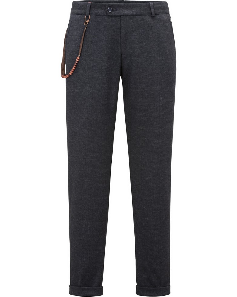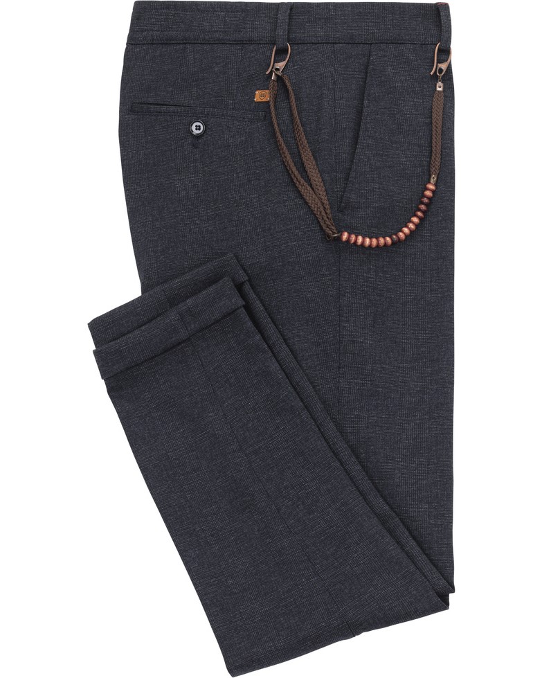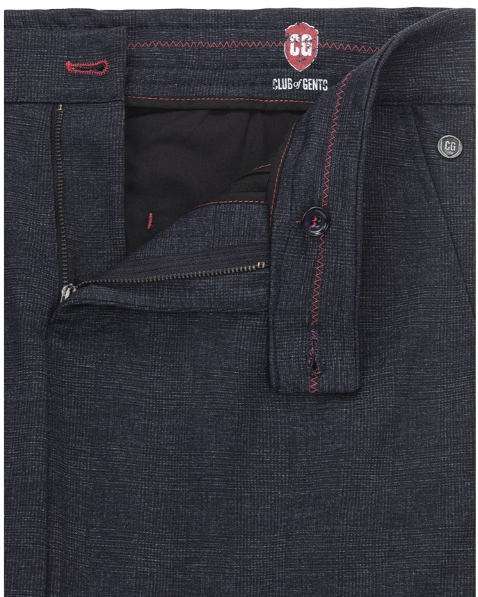 Leichte sommerliche Hose für lockere Business Casual Outfits. Marke: Carl Gross | Model: Conn | Passform: Slim Fit | Farbe: dunkelblau | Muster: Karo | Material: 78% PES | 18% CV | 4% EA