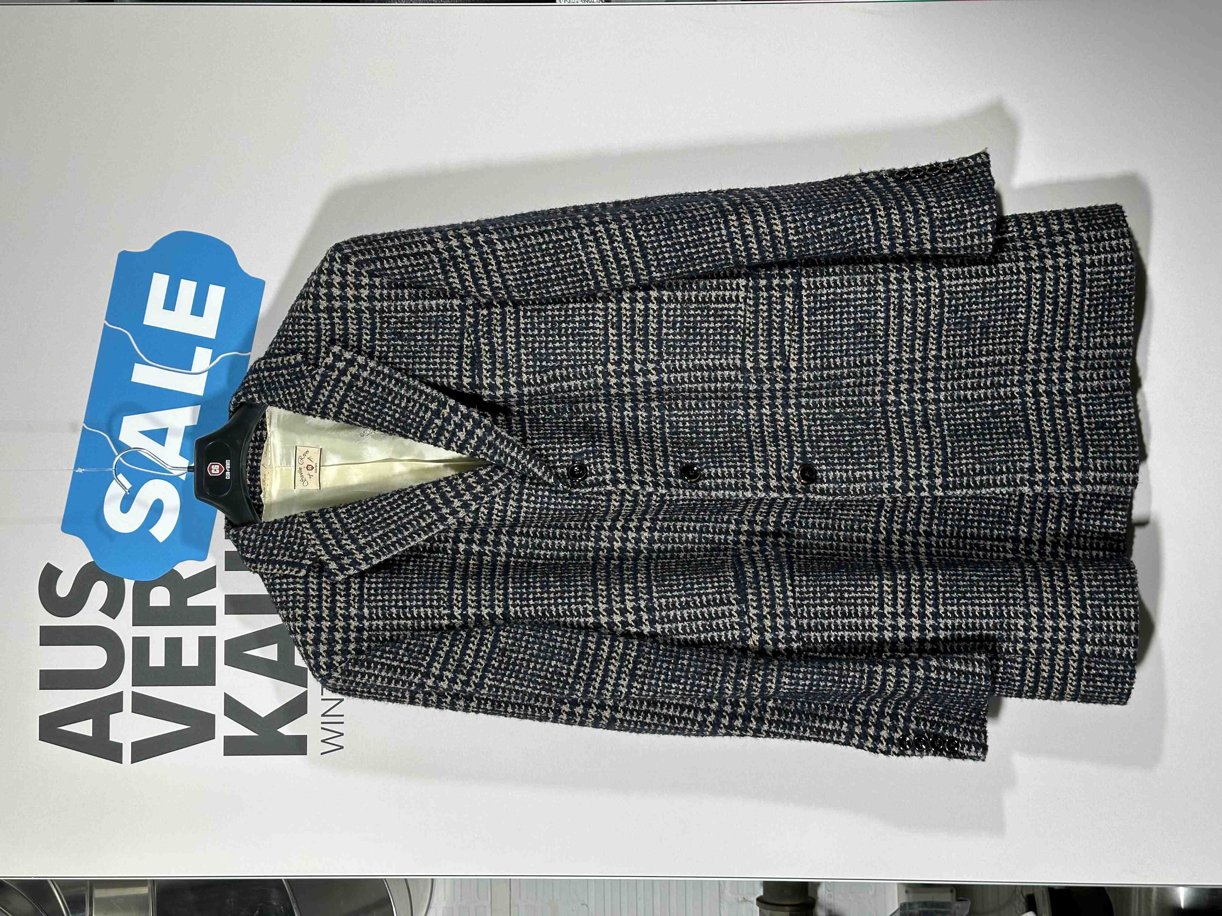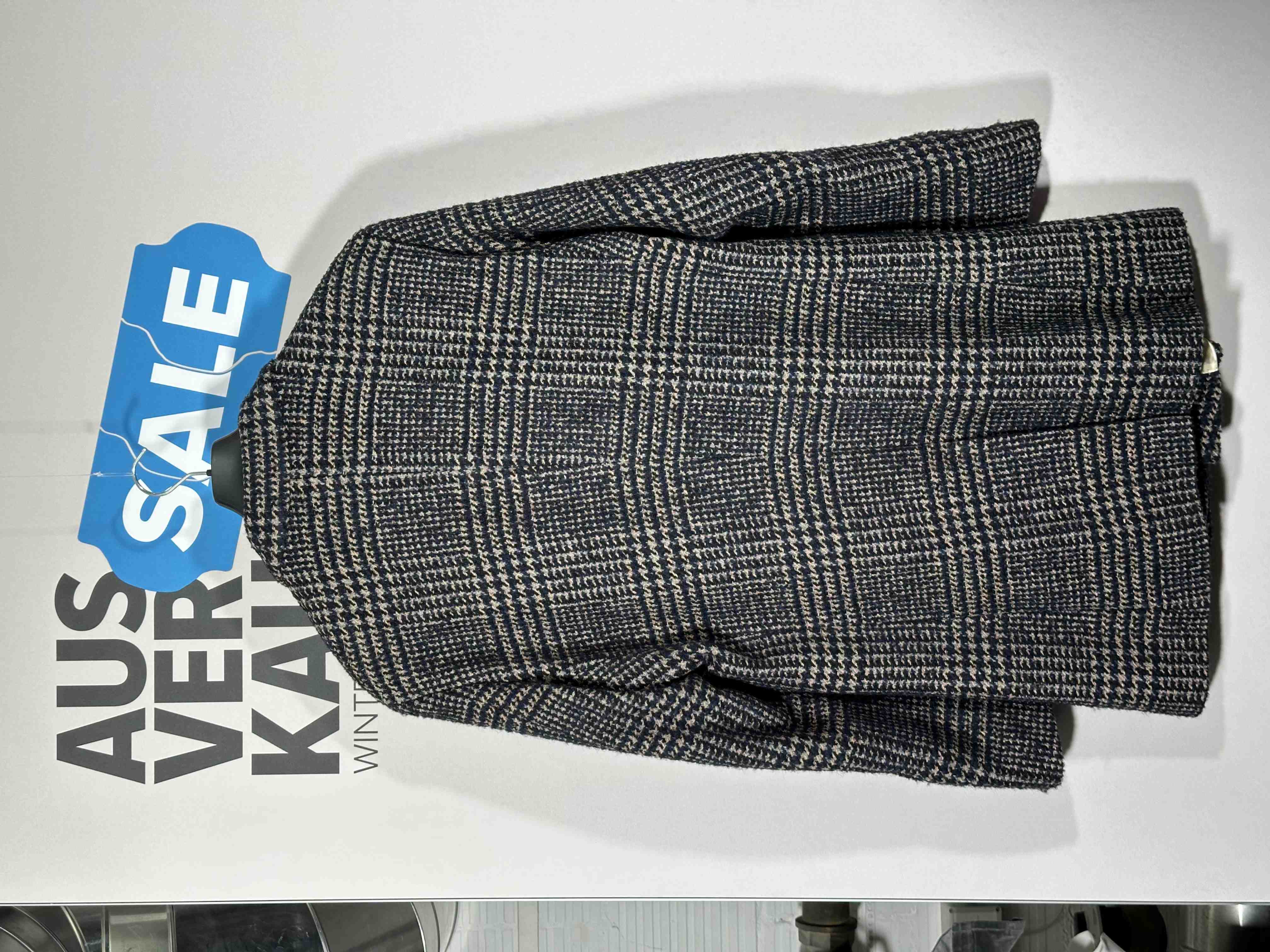 Übergangs Mantel. Marke: Carl Gross | Model: Minor | Farbe: Blau/Beige | Muster: Karo | Material: 40% Baumwolle, 14% Schurwolle 20% Andere Fasern