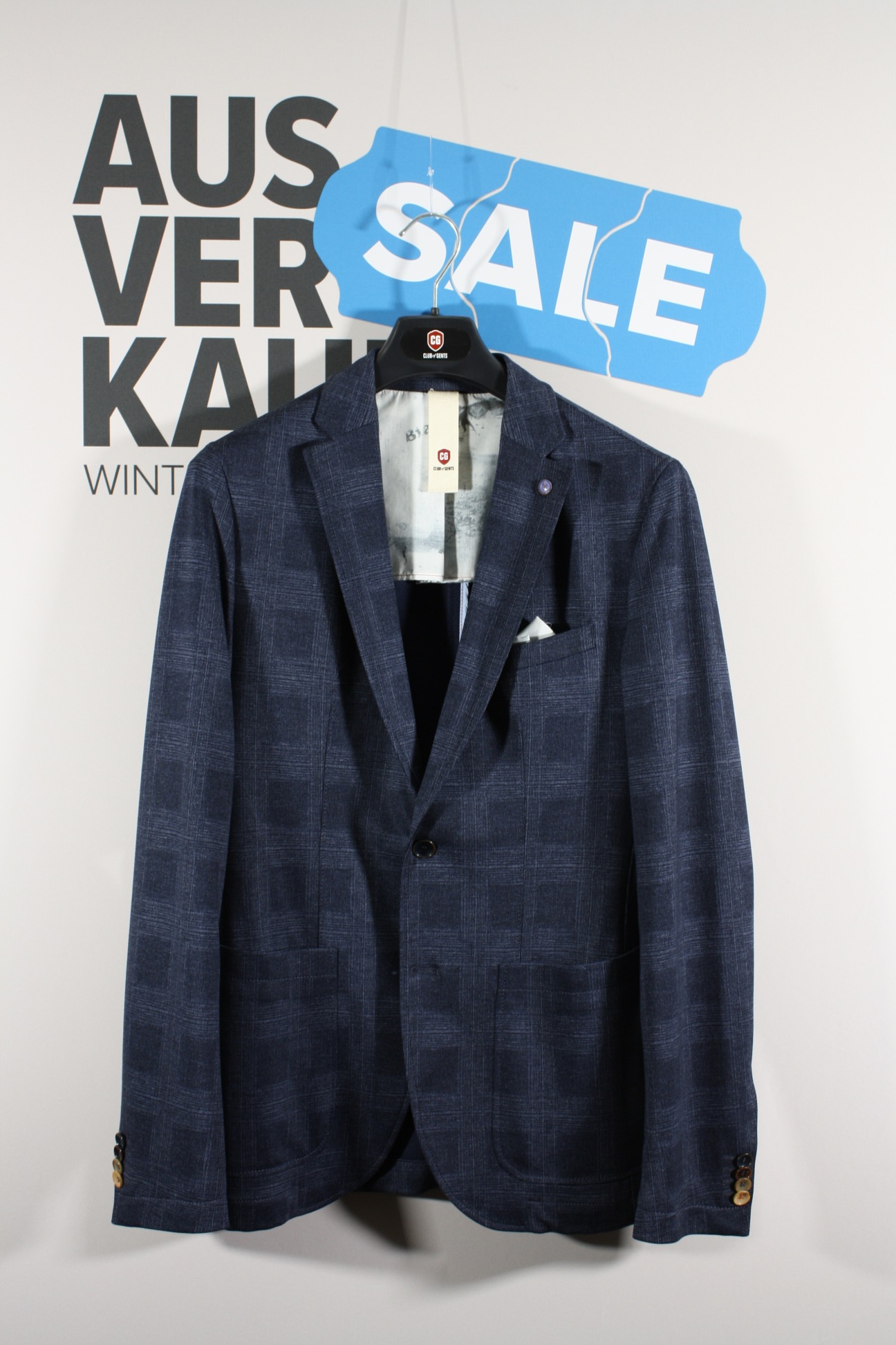 Leichter sommerlicher Sakko für Feste oder lockere Outfits. Material: 70% LI 30% VIS | Passform: Slim Fit | Farbe: blau | Muster: kariert | Details: Zwei Knopf, Pattentaschen | Innenfutter: Viskose mit Muster