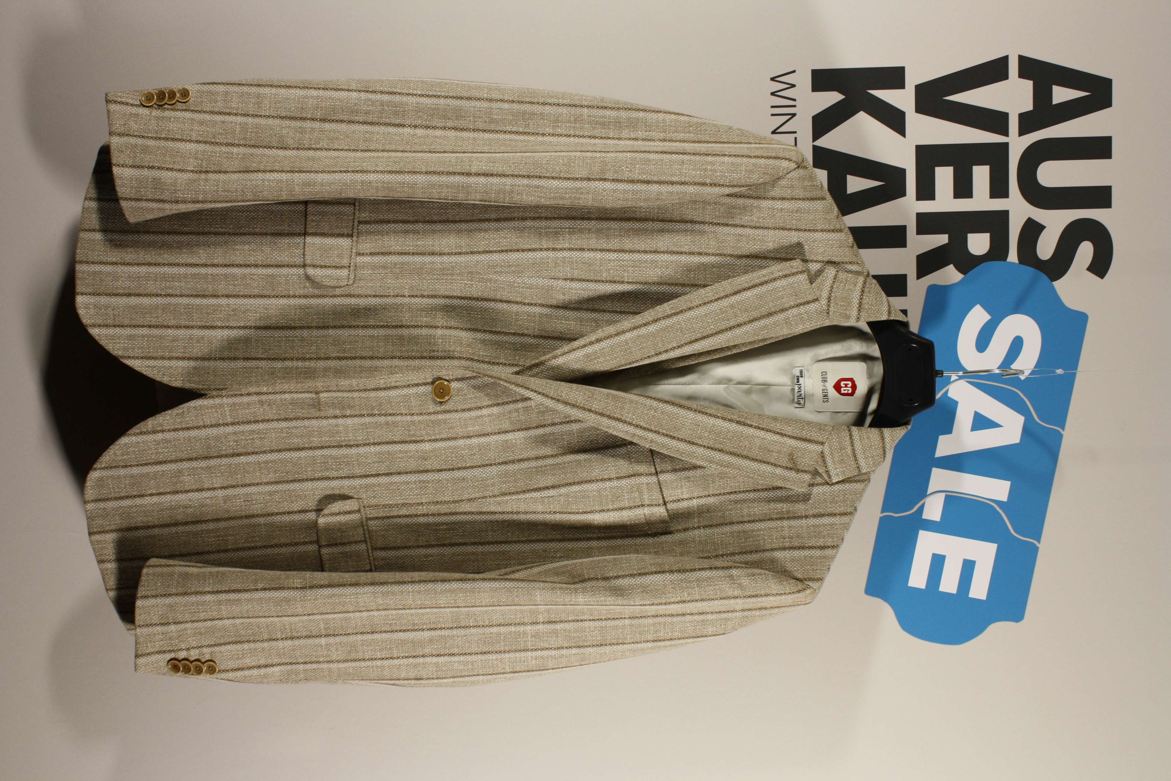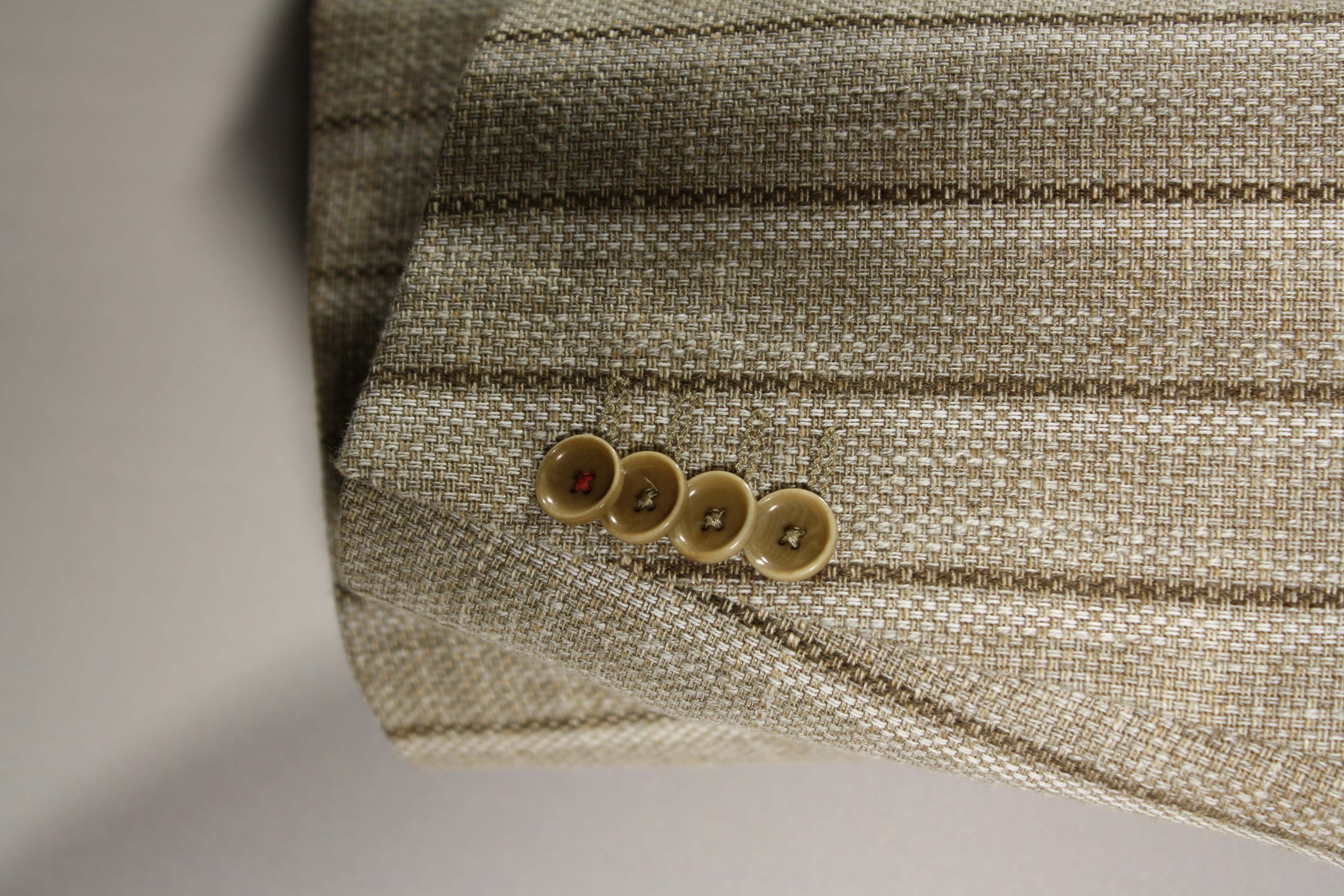 Leichter sommerlicher Sakko für Feste oder lockere Outfits. Kann auch als Boho Hochzeit Anzug getragen werden. Material: 100% Baumwolle | Passform: Slim Fit | Farbe: baige | Muster: streifen |