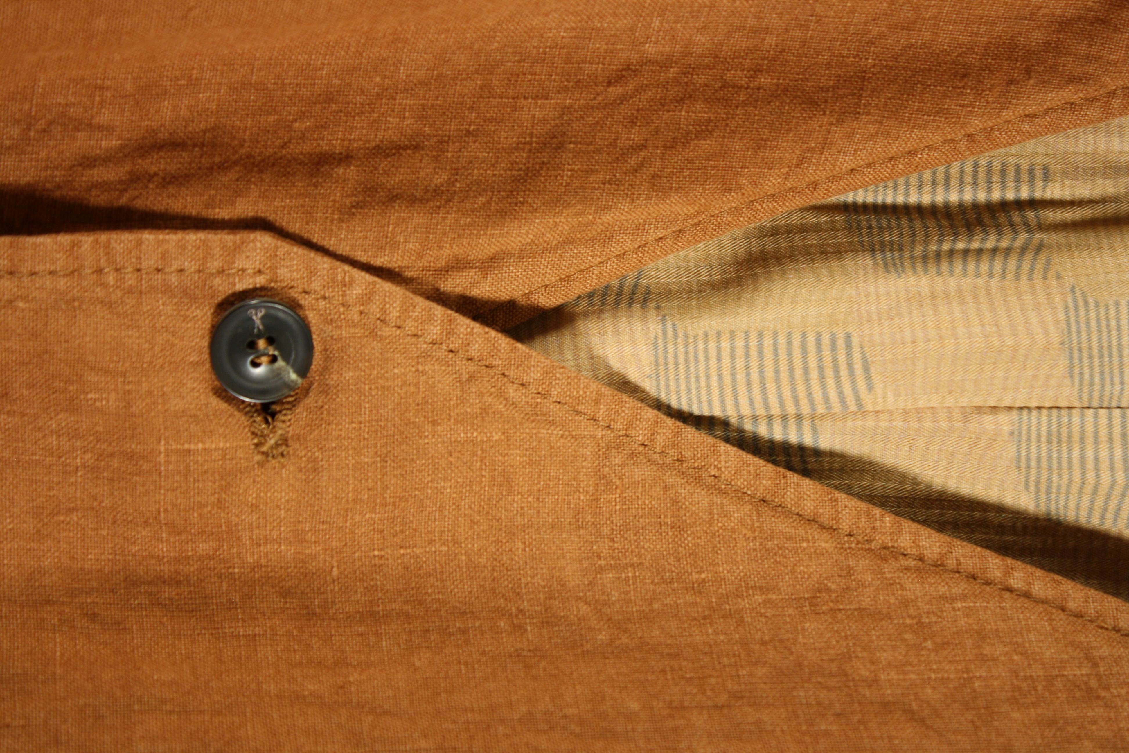 Sommerliche Weste für elegante Freizeit- und Business Outfits. Material: 100% Leinen | Passform: Slim Fit | Farbe: terracotta | Muster: uni | Details: aufgesetzte Taschen, Steinkette | Innenfutter: Baumwolle / Polyester mit Muster